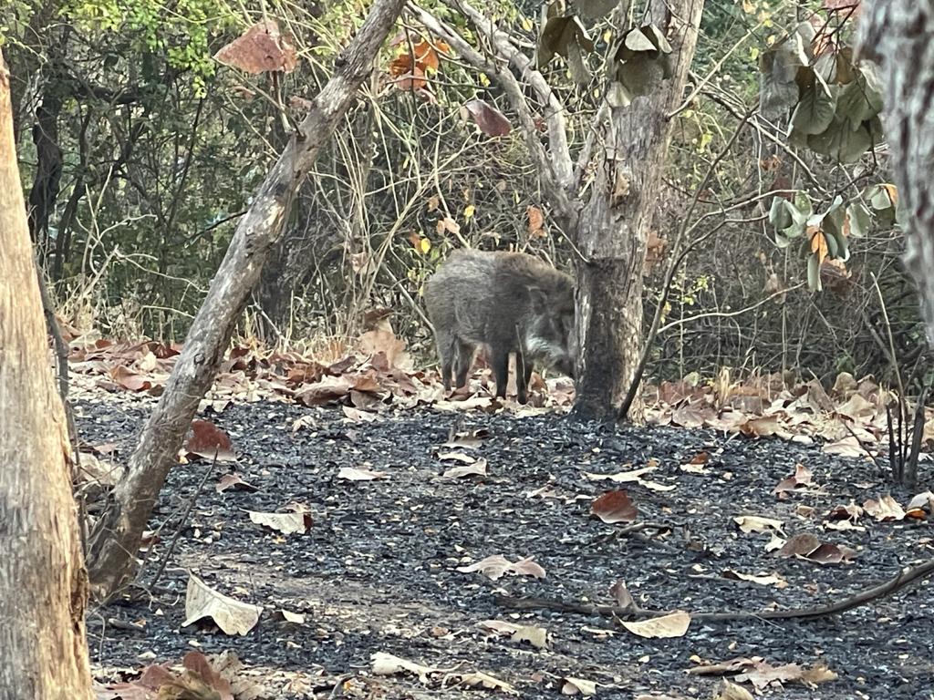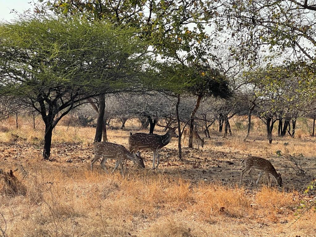 After the mandatory attempts at a good click with our phone cameras, we moved on. The deers, neelgais and wild boars made sporadic appearances on the sides of the path, with numerous peacocks adding colour.