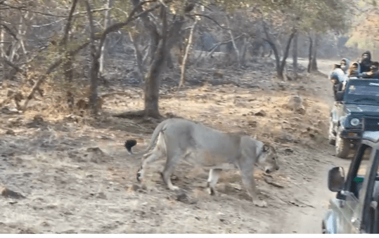 Awestruck, we watched as it began to move towards our path. As our breath stopped, it nonchalantly crossed the path of the jeep in front. While we were glued to its regal journey, the lioness crossed the path into the jungle on the other side, never once glancing at the humans around.