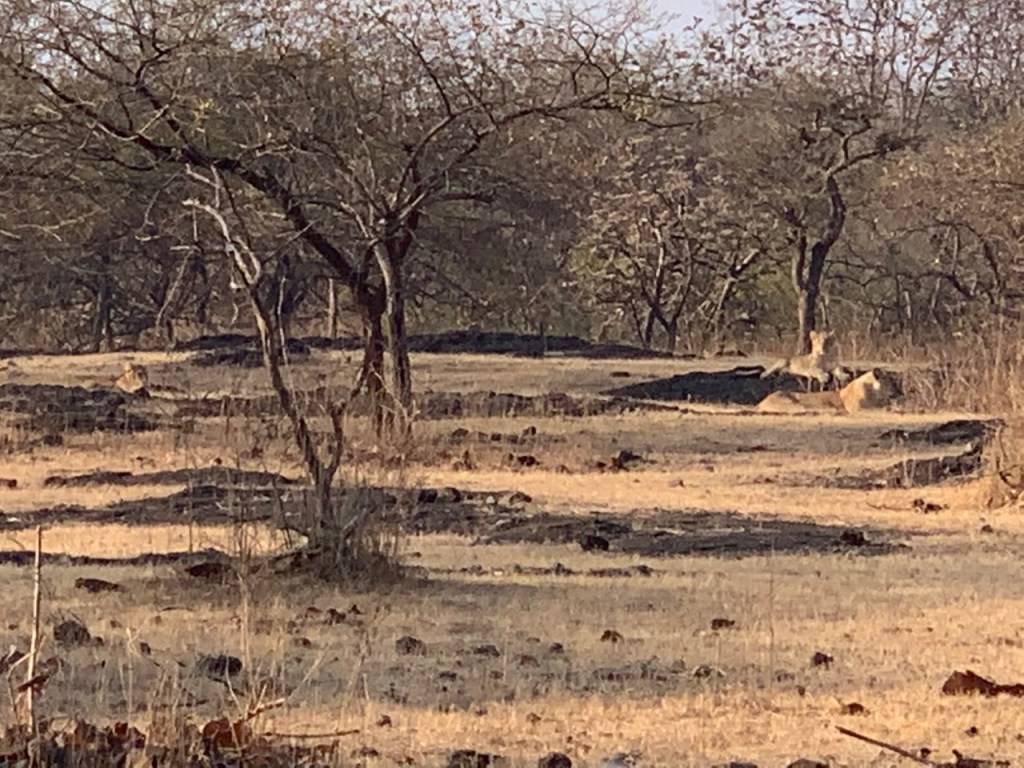 Speechless at the close encounter we sped away only to chance upon a pride of two lionesses and two cubs hanging out together. A line of jeeps had stopped on the path and people watched the family not too far away. They lazed and cavorted around unfazed. The lions of Gir had been kind enough to grace us with ample appearance!