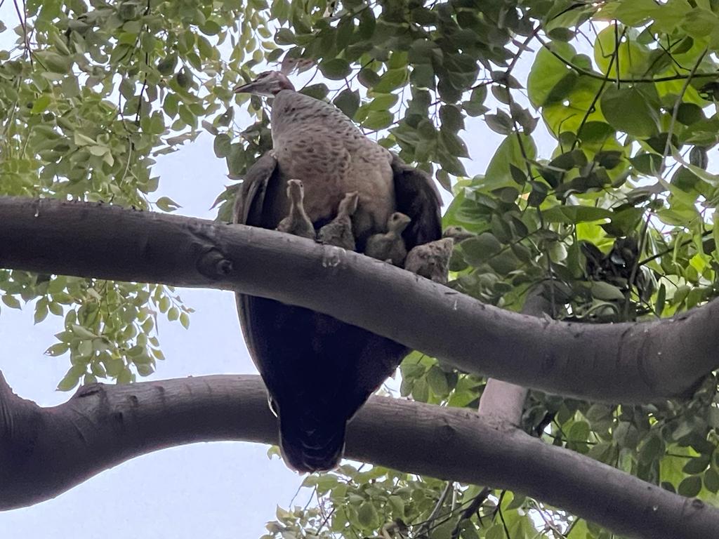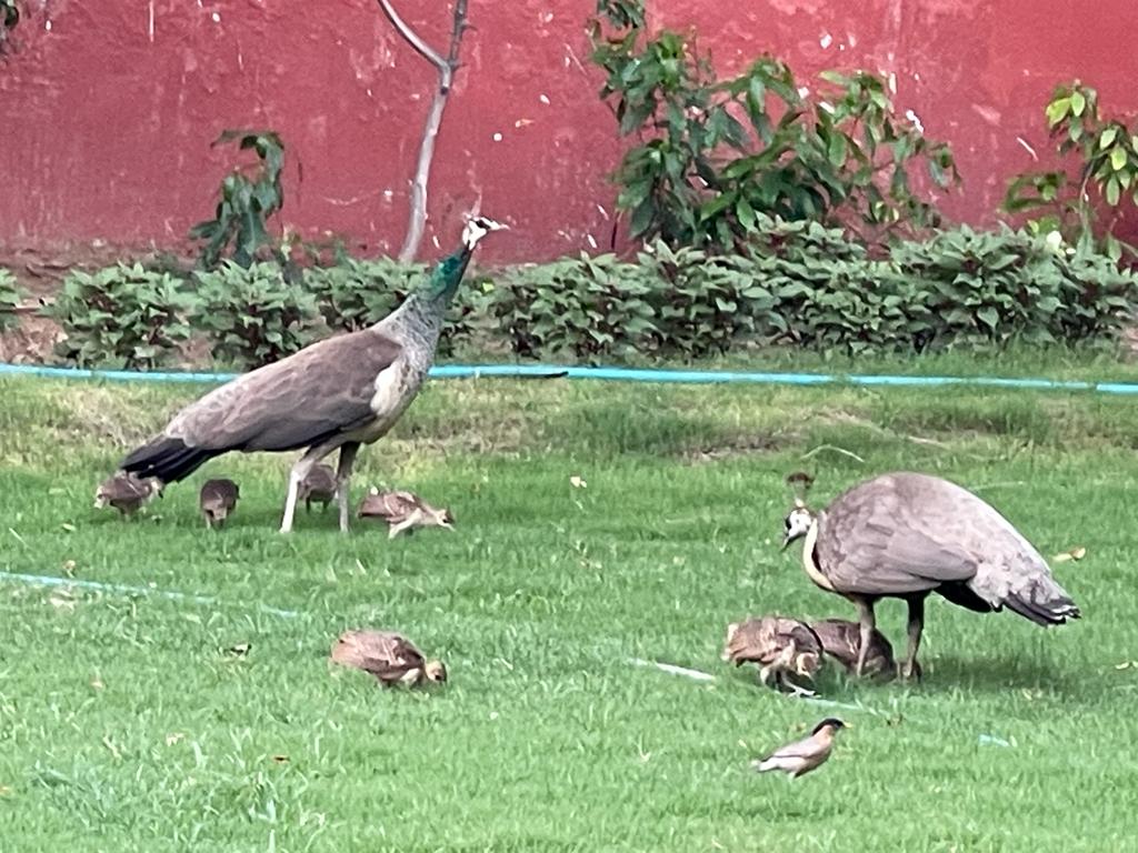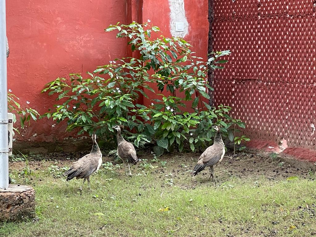 This hope is derived from the experience we had in the last few months. Around May this year, a peahen with five small chicks sauntered in through the main gate into the compound. And they stayed.